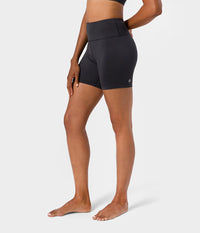 High-rise, form-fitting bike shorts with a 5” inseam and wide waistband, designed with four-way stretch for effortless movement during your practice.