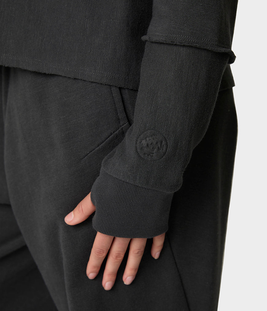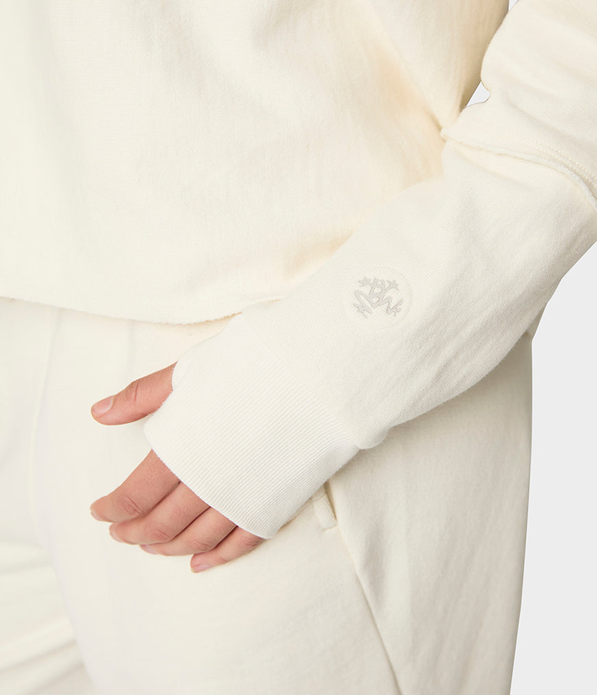 The Women’s CAS Crew is your go-to layer for cozy comfort and mindful movement. Crafted from a sustainable blend of organic cotton and hemp, this premium fleece sweatshirt delivers a relaxed silhouette and lived-in softness that wears beautifully from studio to street. Made with Manduka’s zero-waste design technology to minimize fabric waste, it’s a feel-good favorite you'll reach for daily, whether you're warming up, winding down, or in between flows.