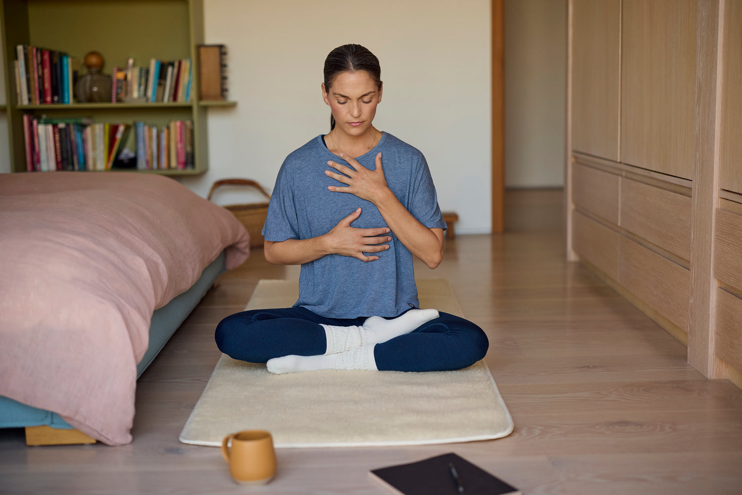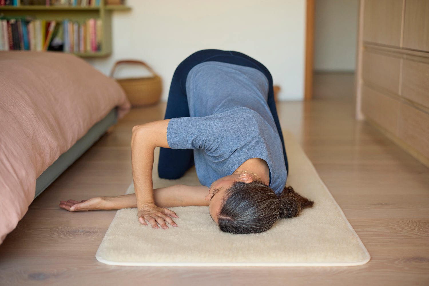 A naturally soft, Merino wool mat for restorative yoga and meditation, blending elevated design with lasting comfort.